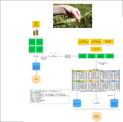 Building on previously developed genomic tools, this project aims to revolutionize our understanding of wheat-Septoria tritici blotch interactions. We're validating predictive models through controlled greenhouse challenges of 200 wheat lines with 100 pathogen isolates, then extending to field conditions with fresh Spanish isolates. Through genome-wide association studies, we're pinpointing resistance loci and developing forecasting tools for pathogen aggressiveness. Our goal is rapid knowledge transfer to breeders and farmers through workshops, training sessions, and publications. Impact: Enabling breeders to develop durable disease resistance by understanding the genetic architecture of both host and pathogen.